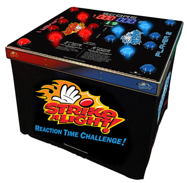 Strike A Light is a two-player head-to-head game that will put your reaction time to the test. As the lights bleep in sequence, players must quickly strike the corresponding lights to earn points. It's a thrilling challenge that will keep participants on their toes! Encouraging friendly competition and bringing the crowds to your exhibition stand.