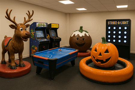 At Cream Games, we specialise in indoor entertainment hire, bringing together arcade machines, interactive challenges, and even festive rodeo rides — all delivered and set up anywhere in the UK.
